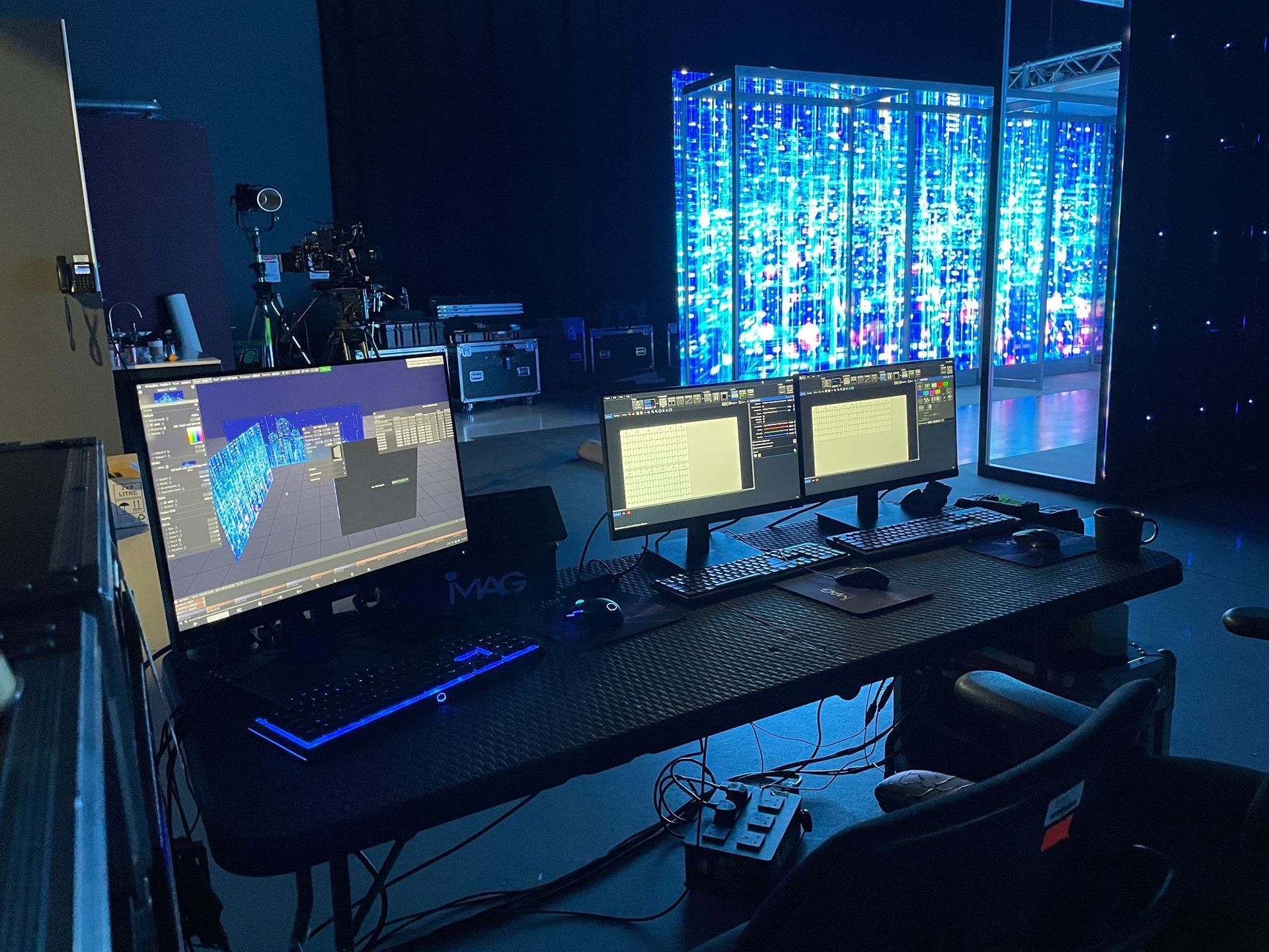 The project had to be executed within a six-day window—two days to build, one day to pre-light, one rehearsal day, two shoot days, and a final de-rig. Configuration changes were frequent throughout production, requiring a system that could adapt in real time without interrupting momentum or quality. At every stage, the visuals had to perform in-camera, ready for editorial without dependence on post-production fixes. Previsualised content had to match what appeared on screen. There was no margin for error.