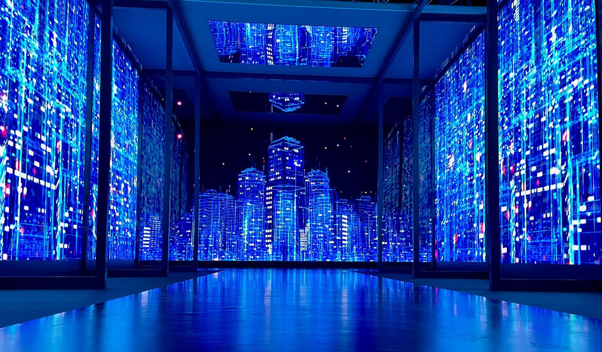 The scope of the production was complex from the outset. Two fully independent yet interconnected sets needed to run simultaneously: one transporting viewers across a range of Aramco’s global operations, the other visualising a futuristic corporate environment. Each environment had to deliver a distinct visual identity while maintaining cinematic coherence.
