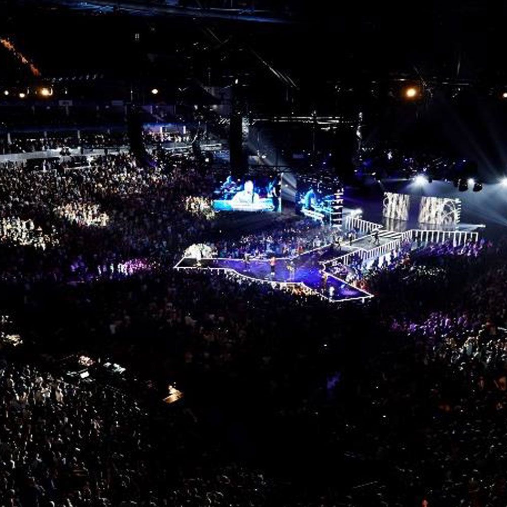 To provide and run 6 30sqm Indoor LED ROE MC-7mm screens in a back to back formation, flown above a central stage at Londons 02 Arena for four days of live shows.