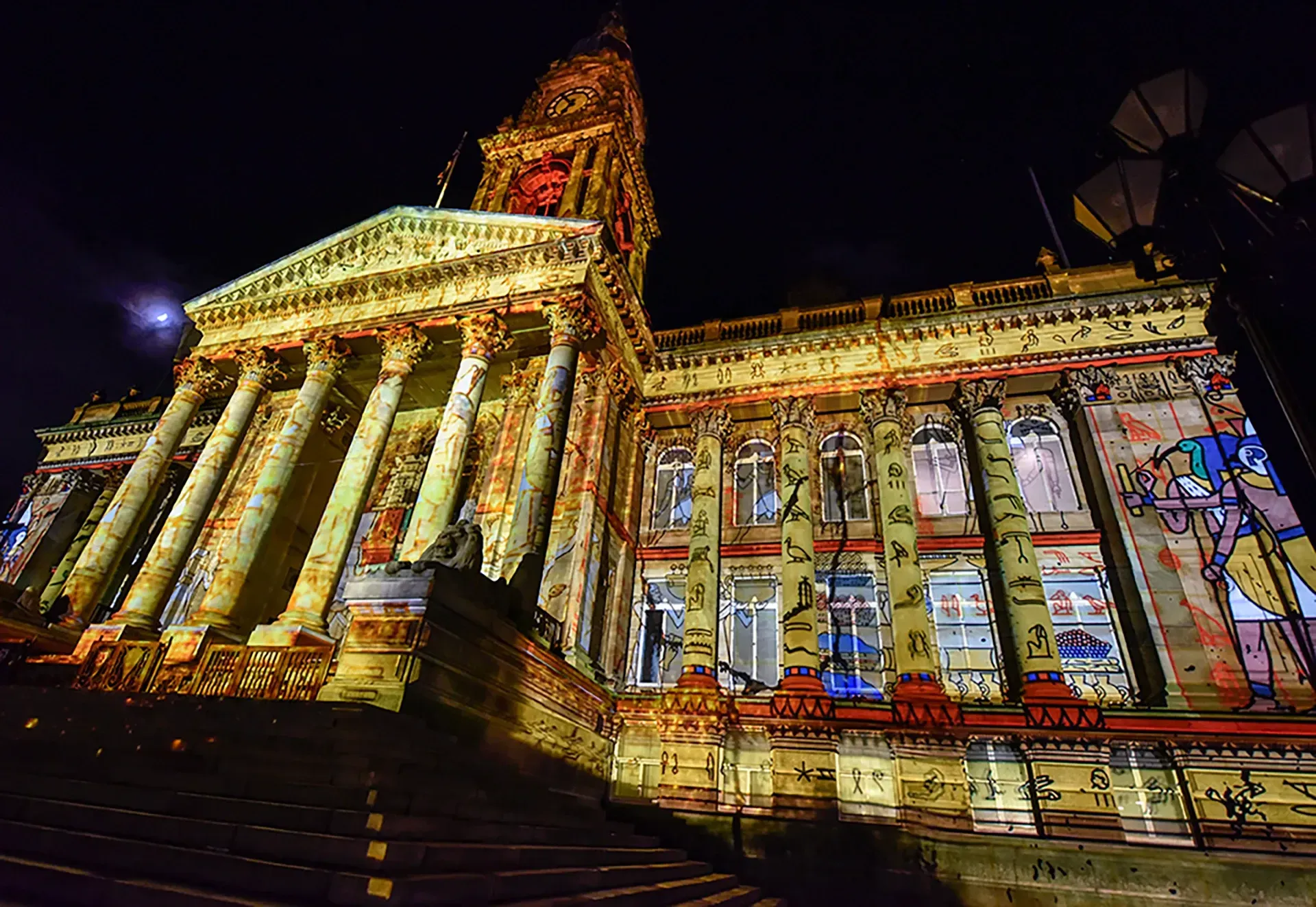 Creative studio Novak approached Graymatter Video to provide the technical design and system delivery for YARN, a stunning large-scale projection artwork set to illuminate Bolton’s iconic Town Hall in December 2024. Featuring original music by Ed Carter, YARN was conceived as a captivating audiovisual experience, transforming the Town Hall façade into a moving tapestry of vibrant colour, dynamic motion, and immersive sound.